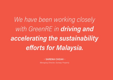 We have been working closely with GreenRE in driving and accelerating the sustainability efforts for Malaysia. ACKNOWLEDGEMENTS – SARENA CHEAH – Managing Director, Sunway Property 151 SUSTAINABLE REAL ESTATE | Our 10-Year Journey