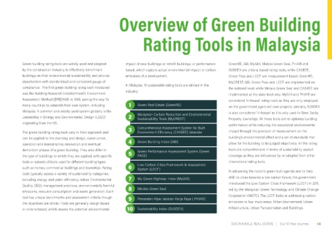 Leadership in Energy and Environmental Design (LEED) 2 Malaysian Carbon Reduction and Environmental Property townships. All these tools aim to optimise building