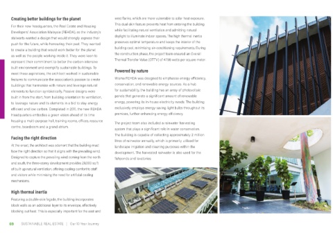 features to communicate the association’s passion to create Wisma REHDA was designed to emphasise energy efficiency,