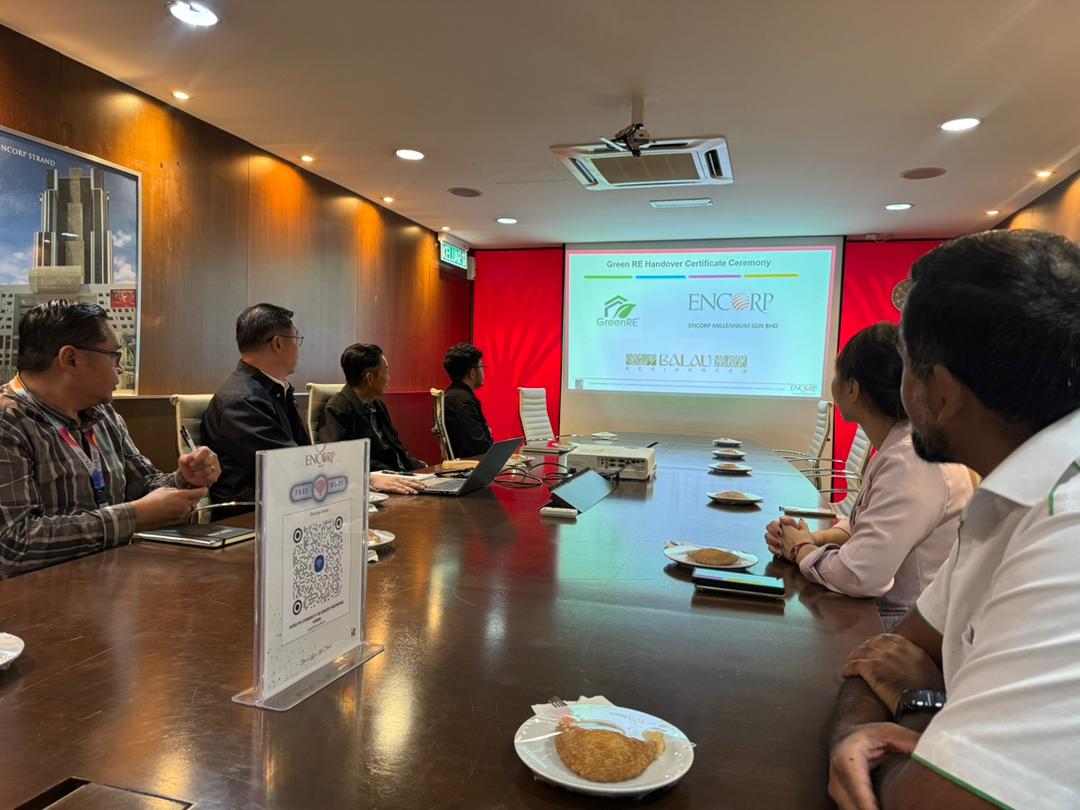 The certificate was received by Ahmad Harzimi Mohd Taib, Group Chief Executive Officer of Encorp Millenium Sdn Bhd, in a presentation attended by Ir. Ashwin Thurairajah, Executive Director of GreenRE, and Ts. Nur Fateha Jamaluddin, Senior Manager of GreenRE.