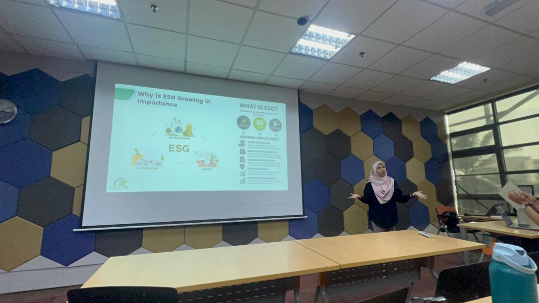 The session focused on experience sharing in the construction green market and Sustainable Development Goals (SDGs), supporting the students’ assignment to: Evaluate Bursa Malaysia-listed construction companies using a Sustainability Scorecard. Apply the Triple Bottom Line framework (Environment, Social, Economy) to assess sustainability integration in business operations and long-term strategy. Identify gaps and propose improvements to enhance corporate sustainability.